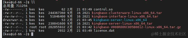 解压:tar -zxvf kingbase‐V008R006C005B0012‐linux‐x86_64.tar.gz