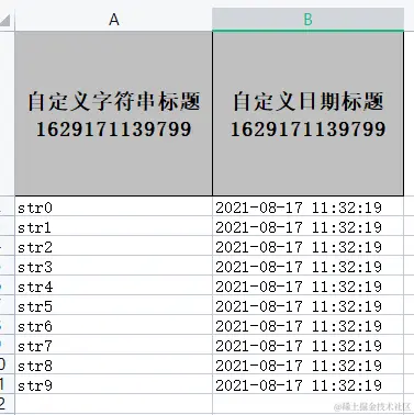 该头生成器,将固定返回 自定义字符串标题 和 自定义日期标题 两列头信息,实际使用时可根据业务动态处理,方便在一些权限控制时动态修改或者增删列头。