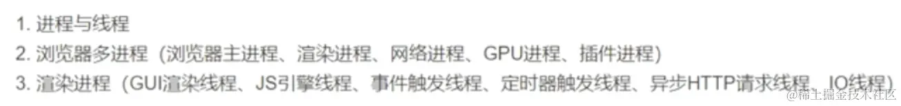 2 主(JS引擎)线程:处理js代码(解析、执行)。消息队列不为空,循环取任务执行。由于主线程和GUI线程互斥、所以当JS任务执行过长时,会阻塞页面的渲染,造成卡顿。