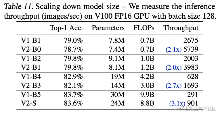 缩小EfficientNetV2的模型大小与对标的EfficientNetV1,对比准确率和速度。