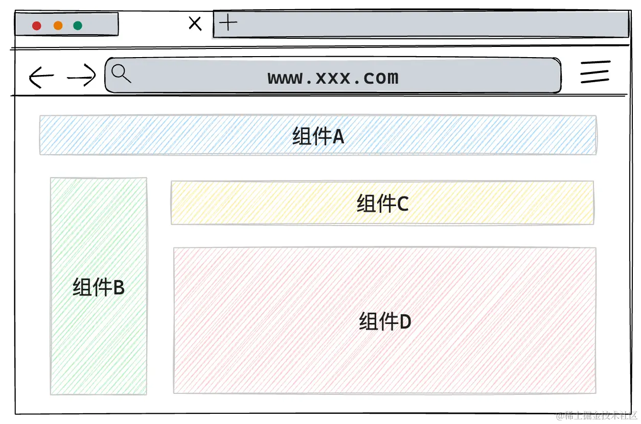 组件化思想就是将界面划分为一些独立的、可复用的部分,每部分被称之为一个"组件"。每个组件都可以包含自己的布局(HTML)、样式(CSS)和逻辑(JavaScript)。组件可以独立存在,也可以与其他组件组合,形成完整的应用。