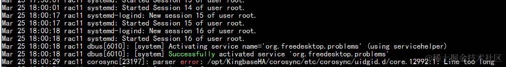 查看命令执行节点/var/log/message日志,看到如下结果: