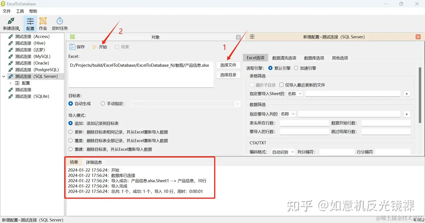 ExcelToDatabase 是一个可以批量导入excel到数据库的自动化工具。 支持(xls/xlsx/xlsm/xlsb/csv/txt)6种常见格式的excel文件和(mysql/oracle/sql server/postgresql/access/hive/sqlite/达梦)8种数据库。 下面我们以一张产品信息表导入sql server数据库为例。