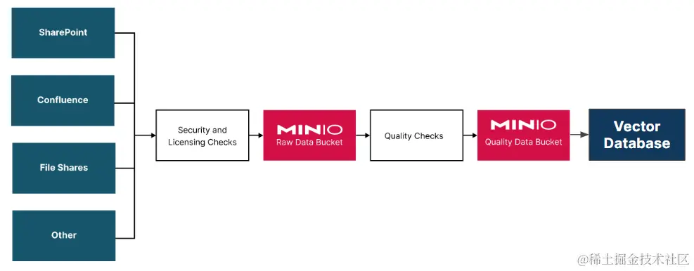 不幸的是,大多数组织没有一个包含干净准确文档的单一存储库。相反,文档以多种格式分散在组织的各个团队门户中。因此,构建自定义语料库的第一步是构建一个管道,该管道仅获取已批准与生成式 AI 一起使用的文档,并将它们放入您的向量数据库中。对于大型全球组织而言,这可能是生成式 AI 解决方案最艰巨的任务。