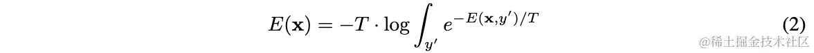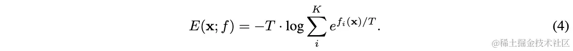 通过关联公式1和公式3,可在不改动网络的情况下将分类网络转换为EBM。定义输入的energy为softmax的对应输入值,再定义的free energy为: