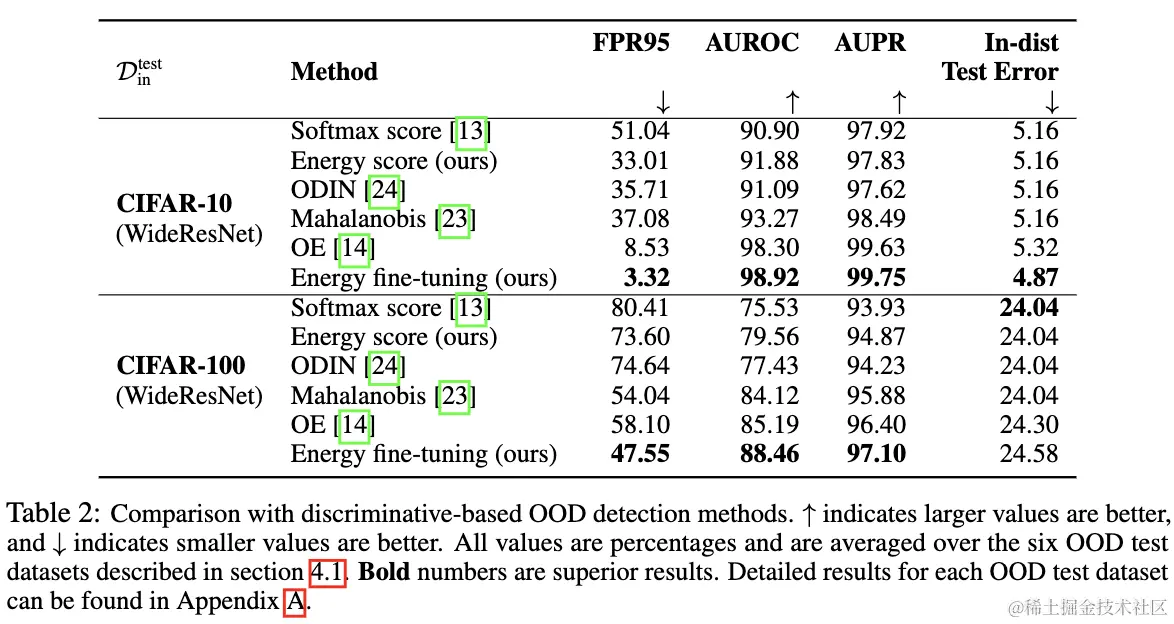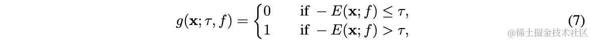 其中为energy阈值,energy高于该阈值的被认定为OOD数据。在实际测试中,使用ID数据计算阈值,保证大部分的训练数据能被正确地区分。另外,需要注意的是,这里用了负energy分数,是为了遵循正样本有更高分数的常规定义。