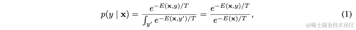 这里将作为输入,对于分类场景,可认为是数据与标签相关的energy常量。分母是配分函数,即所有标签energy的整合,是温度系数。