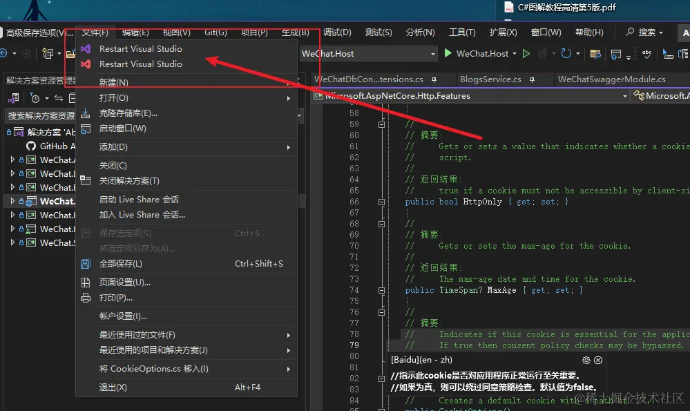重启 Visual Studio 的最简单方法 相当于关闭当前项目 然后重新打开项目