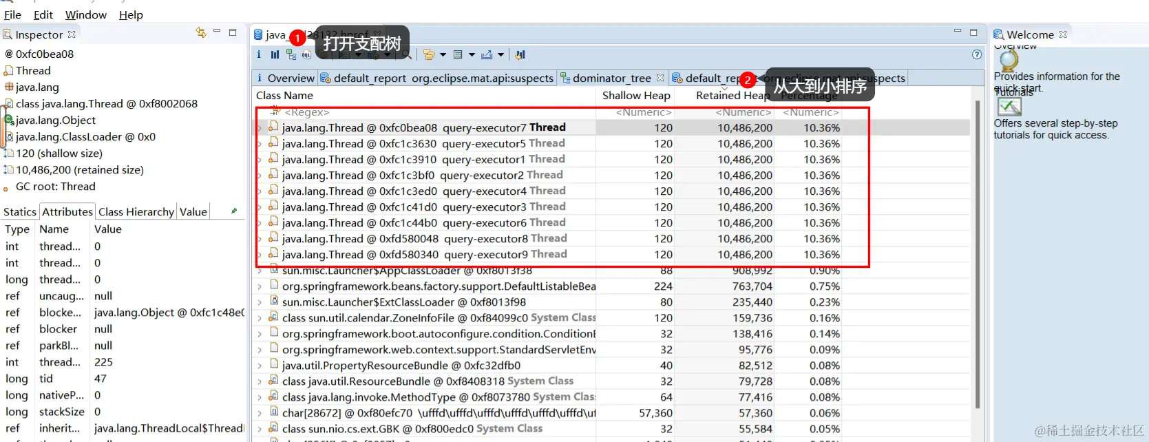 - memory analyzer: eclipse.dev/mat/previou… , 如果是jdk8, memory analyzer下载1.8版本。
