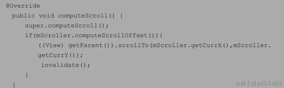 重写View的computeScroll()方法,不断地scrollTo()和invalidate()重绘实现弹性滑动效果