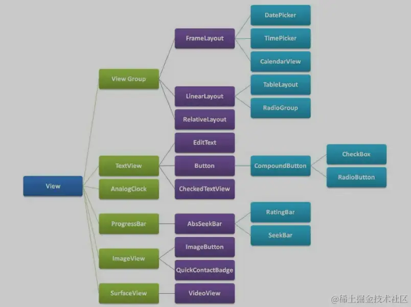 ViewGroup也继承自View,派生出很多基类:LinearLayout,RelativeLayout等