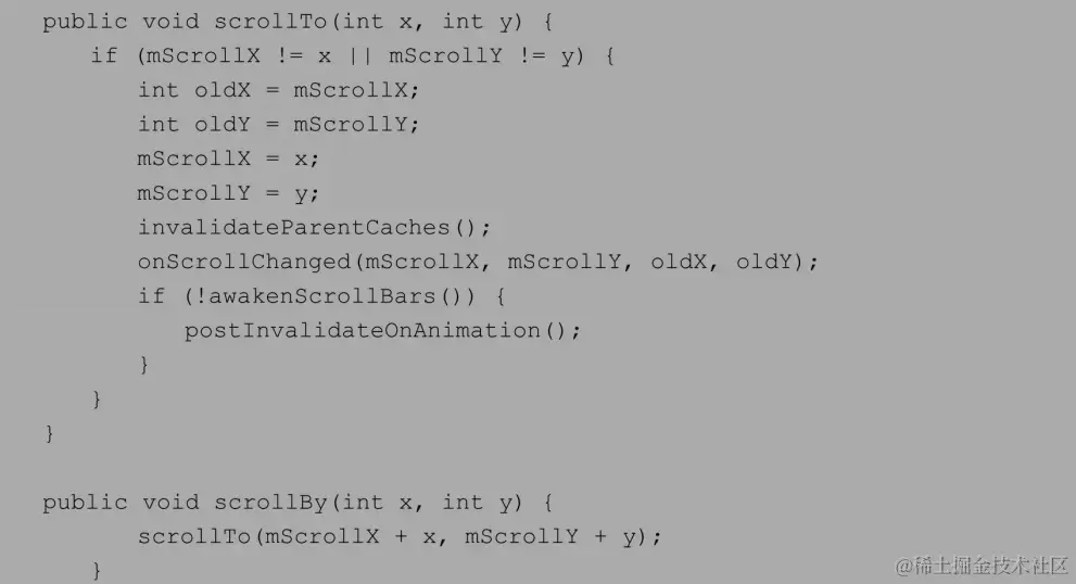 scrollBy(dx, dy)表示移动X和Y方向的dx和dy偏移量,内部实际上调用的是scrollTo()