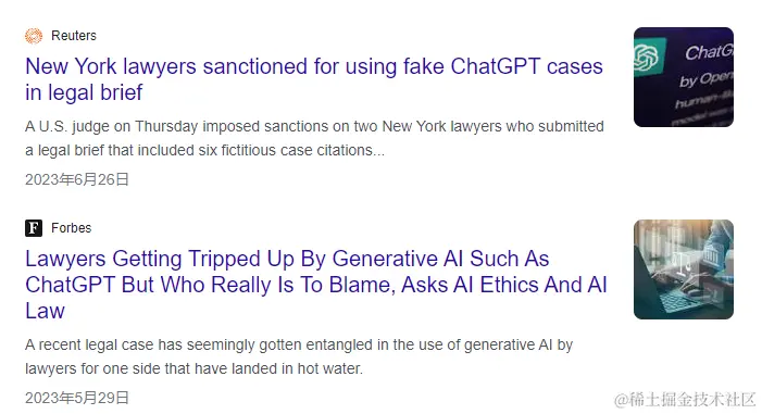 举一个现实的案例,2023年6月,律师 Steven A. Schwartz 和 Peter LoDuca 因提交 ChatGPT 生成的法律简报而被罚款 5000 美元,其中包括对不存在案件的引用。美国地方法官强调,虽然 AI 援助并不被禁止,但所有 AI 生成的文件都必须检查准确性。