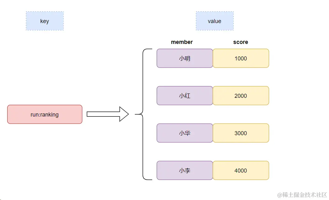 zadd run:ranking 4000 “小李”