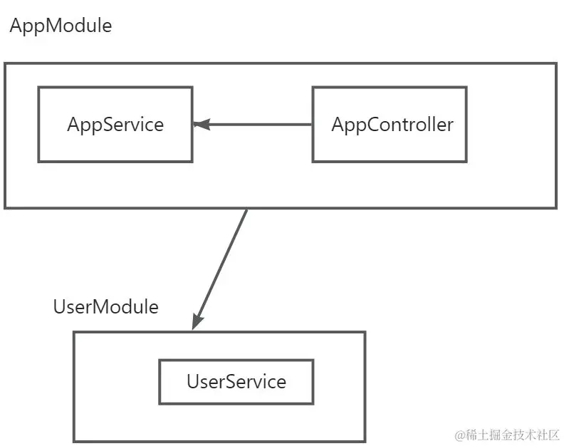 在之前我们说到过,app.module中是不是已经引用了user.module了,那么他现在他就可以注入exports 的 UserService 了