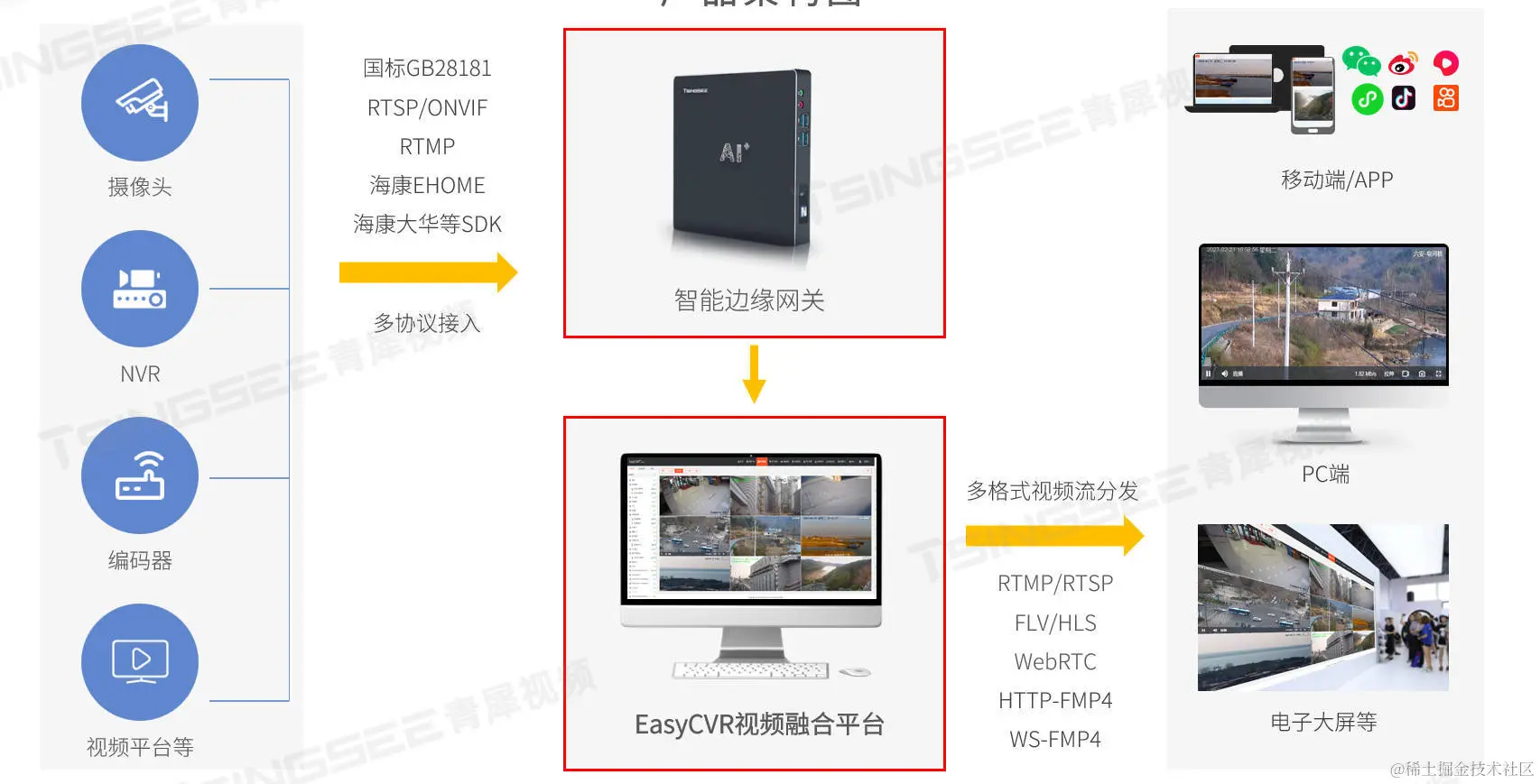 安防视频融合汇聚平台EasyCVR兼容性强,可支持Windows系统、Linux系统以及国产化操作系统等,平台既具备传统安防视频监控的能力,也具备接入AI智能分析的能力,可拓展性强、视频能力灵活,能对外分发RTMP、RTSP、HTTP-FLV、WebSocket-FLV、HLS、WebRTC、ws-fmp4、http-fmp4等视频流。