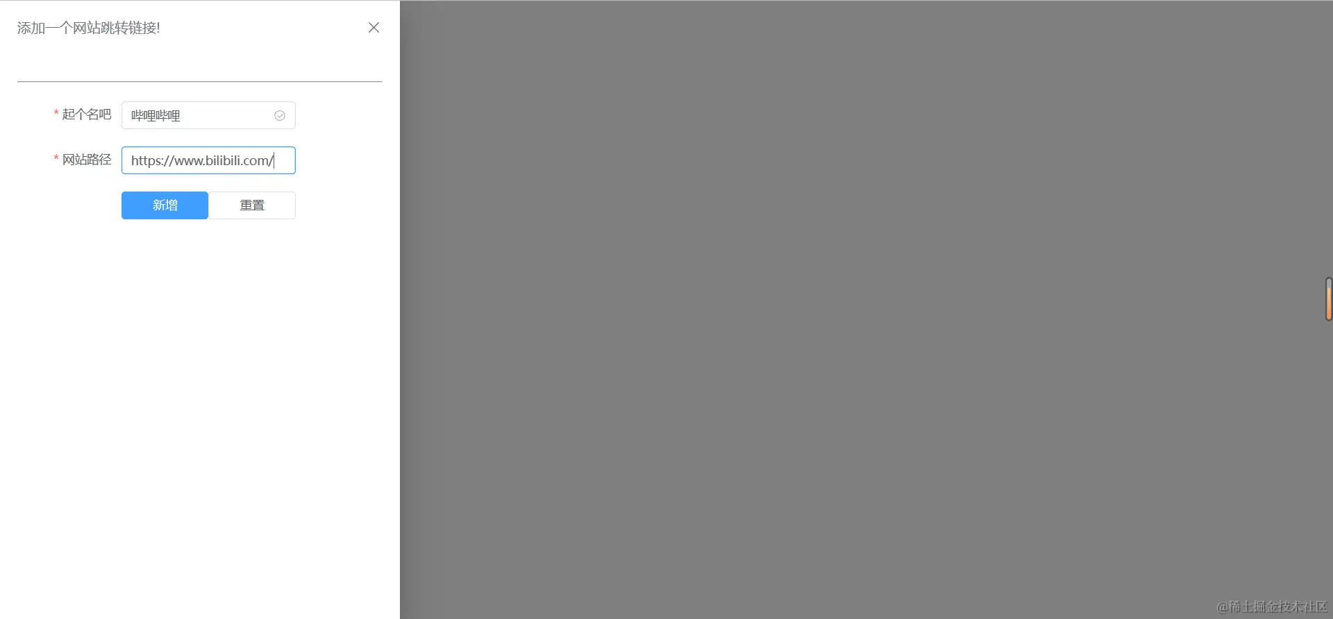新增菜单功能,可以自定义添加图标链接,可跳转/删除。现版本推荐使用sql文件(在git后端项目中)创建数据库。