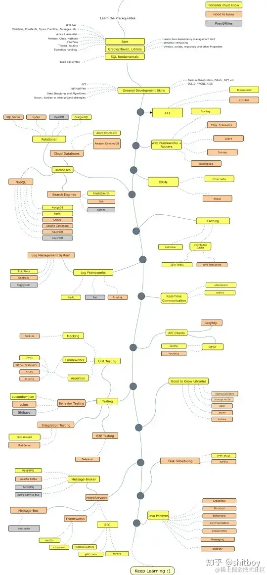 最近整理了一整套Java开发相关课程,涵盖了零基础入门、项目实战、底层原理、架构设计、性能优化、面试等所有的课程。Java的学习路线图如下所示,大家可以结合路线图和自己的实际情况选择性的学习。