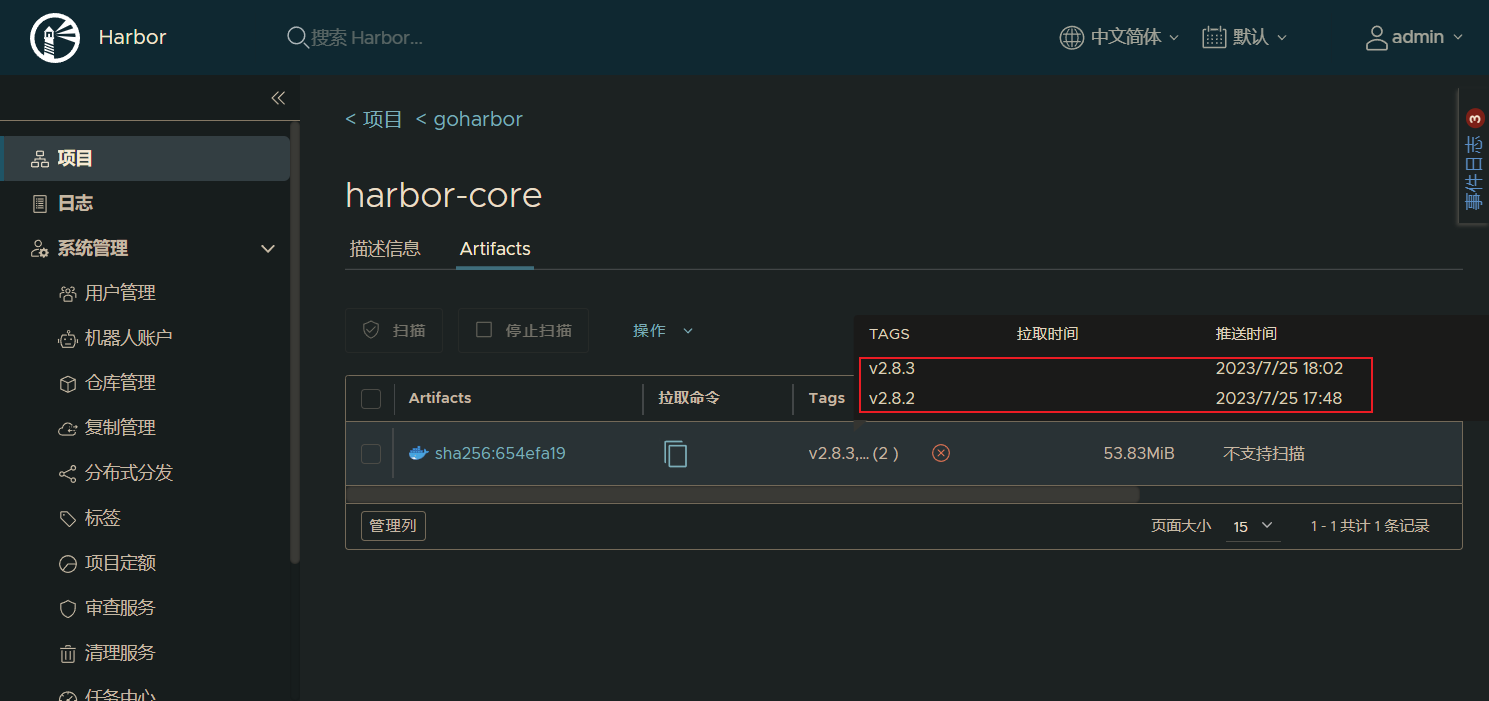 执行:ctr image push --plain-http=true -u admin:harbor666 192.168.11.20:80/goharbor/harbor-core:v2.8.3