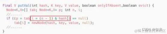 (如图)在HashMap的put方法里面,是通过Key的hash值与数组的长度取模计算得到数组的位置。