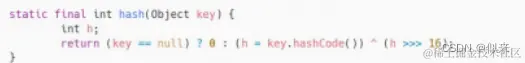 (如图)首先使用key的hashCode无符号右移16位,意味着把hashCode的高位移动到了低位。