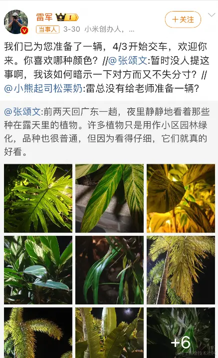 之后微博小网红雷军回复道已为您准备了一辆,喜欢哪种颜色?