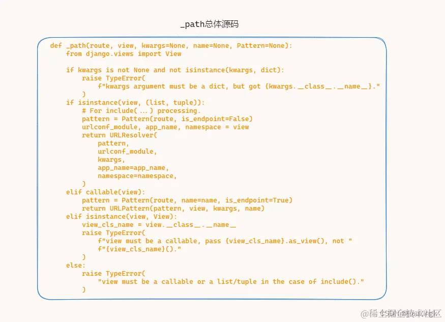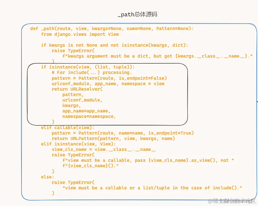 回到开始,我们传递进来的path参数是一个视图函数 , 是一个函数,所以这部分也可以剔除