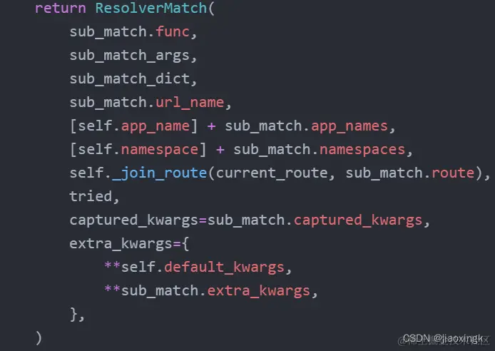 可以看到,最后的匹配结果对象是一个ResolverMatch对象
