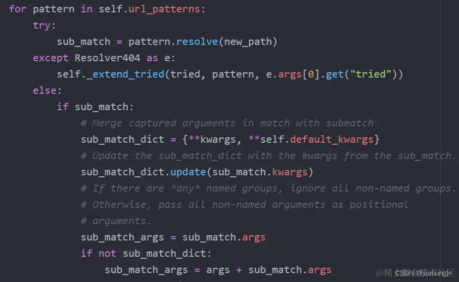 最重要的其实就是这个for循环了,可以看到我们遍历的是urls.py里面的我们提前定义url_patterns