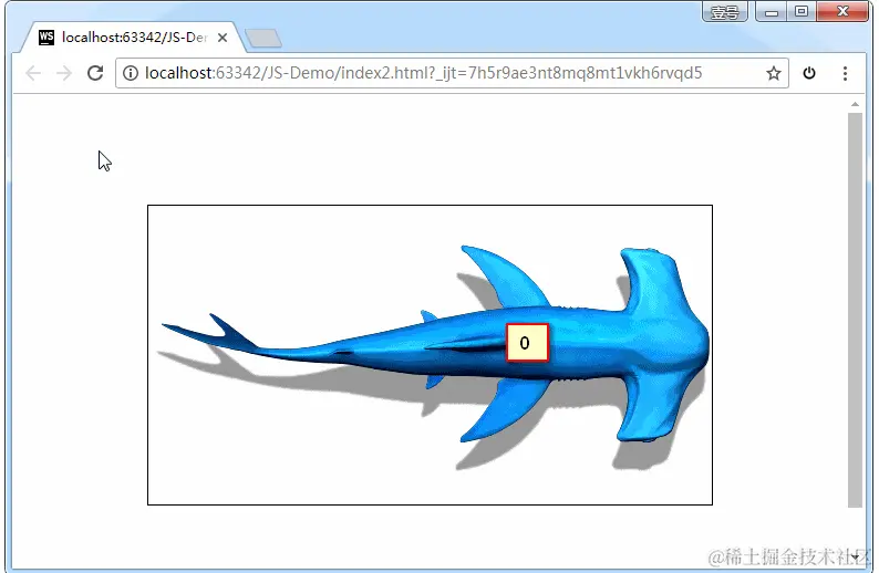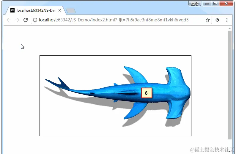 实现的原理也很简单,我们在上一步中已经让shark这个盒子实现了原地摇摆,现在,让 shark 所在的父盒子 sharkBox向前移动,即可。完整版代码是: