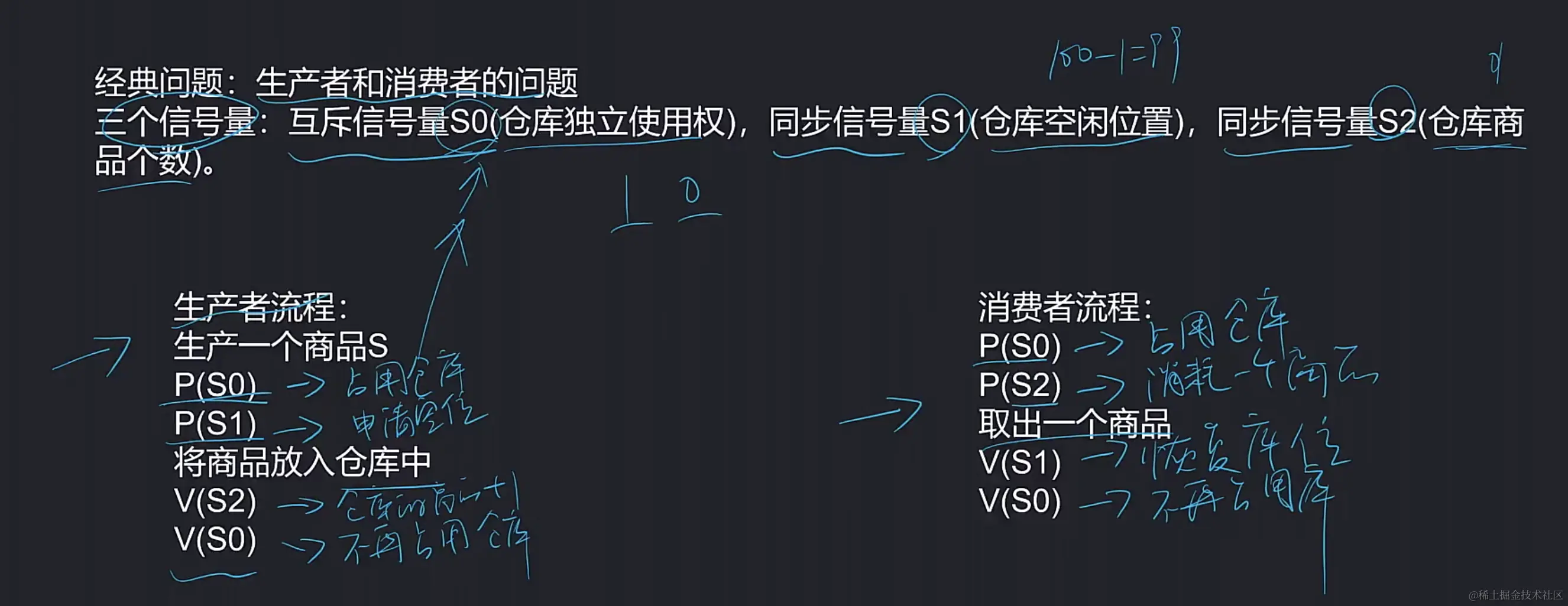 - 同步:指多个进程之间互相协调,以确保它们按照—定的顺序执行。同步可以防止进程之间出现竞争和冲突,从而提高程序的正确性和效率;比如多个人一起做某件事情