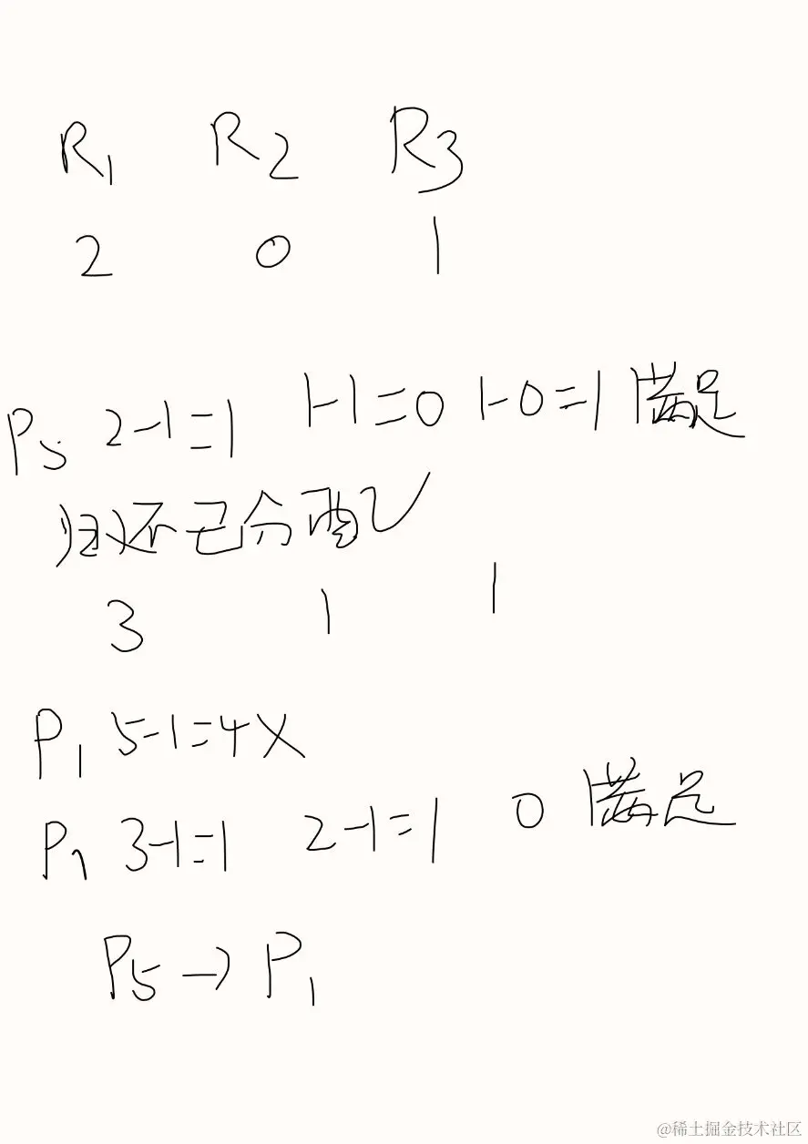 银行家算法真题:假设系统中有三类互斥资源R1、R2和R3,可用资源数分别为10、5和3。在T0时刻系统中有P1、P2、P3、P3和P5五个进程,这些进程对资源的最大需求和己分配资源数如下表所示,此时系统剩余的可用资源数分别为(27)。如果进程按(28)序列执行,那么系统状态是安全的。