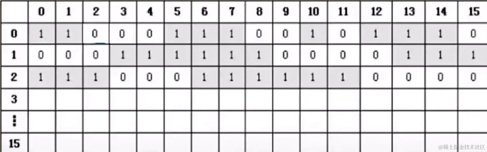某文件管理系统在磁盘上建立了位示图(bitmap),记录磁盘的使用情况。若磁盘上的物理块依次编号为:0、1、2、…,系统中字长为32位,每一位对应文件存储器上的一个物理块,取值0和1分别表示空闲和占用,如下图所示。