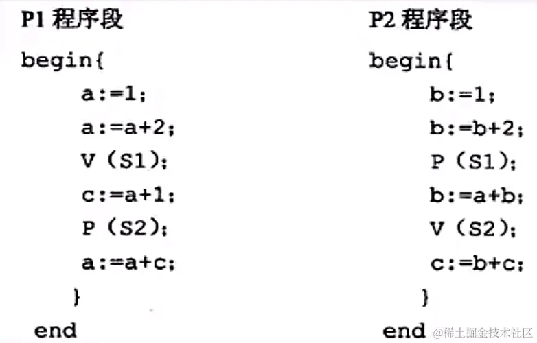 假设某系统采用非抢占式优先级调度算法,若该系统有两个优先级相同的进程P1和P2,各进程的程序段如下所示,若信号量S1和S2的初值都为0,进程P1和P2并发执行后a、b和c的结果分别为:a=(),b=(),C=()。
