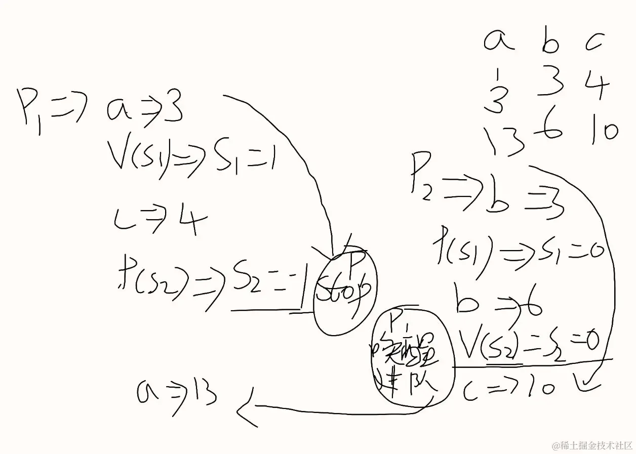 - 同步信号量:是一种用于实现进程同步的工具。它是一个共享变量,可以用来表示资源的数量。比如餐厅里的餐桌数量有限,当顾客来吃饭时,如果餐桌空闲,则可以直接坐下。如果餐桌都满了,则顾客需要等待,餐桌就像是同步信号量,它表示餐桌的数量。顾客就像是进程,他们需要获取餐桌才能吃饭。