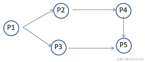 前趋图:用来表示哪些任务可以并行执行,哪些任务之间有顺序关系,具体如下图: