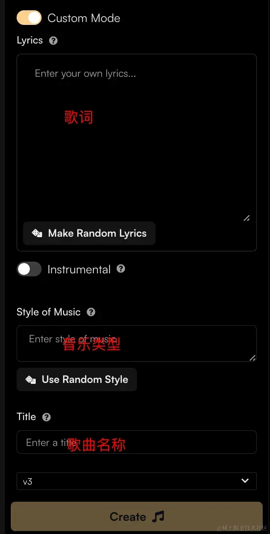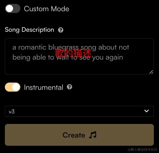 写好你的歌词描述,就是你想写什么类型的歌想表达什么,然后会自动帮你生成一首歌