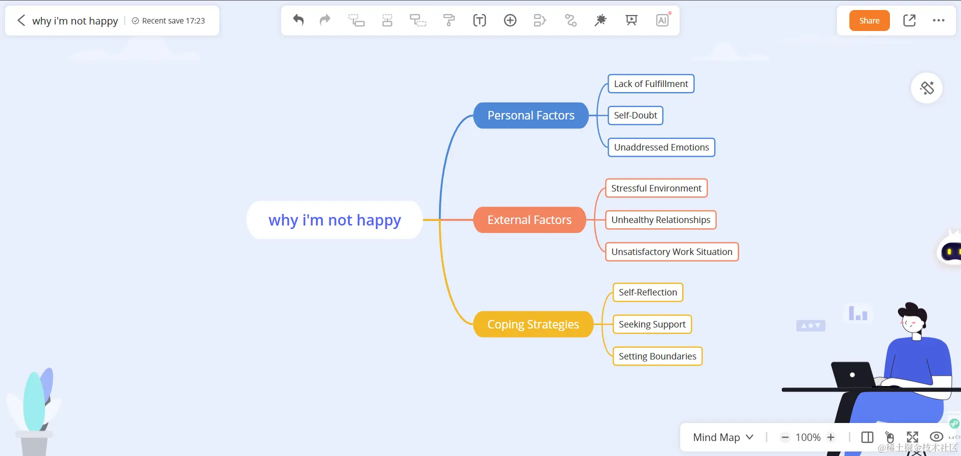 在我思考问题或提出建议时,我常常使用思维导图来整理思路。然而,很难有一款免费、功能齐全的思维导图工具能满足我的需求。最近,在上网搜索时我发现了GitMind AI这个思维导图工具。我发现它提供了多种模板,适用于各种情况,并且还有AI功能可以帮助组织思维并细化每个要点,真是太强大了!每当我需要思考问题时,我都会打开这个工具,它帮助我更好地思考并提供了极大的帮助。让我能够更有效地整理思路和提出建议。
