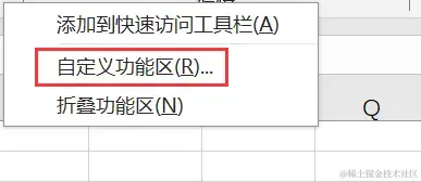 步骤3:在弹出的菜单中,选择【自定义功能区】选项;