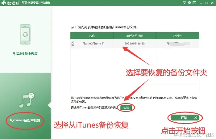**【从iTunes备份中恢复】模式:**之前有通过iTunes备份手机数据,用户可以根据需要选择性地恢复特定的照片,而不是一次性恢复所有找到的文件,这大大提高了恢复的灵活性和效率。