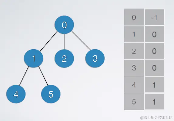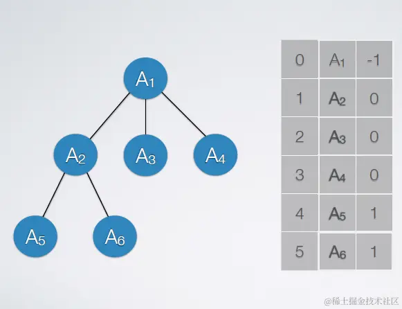 即,双亲表示法。实质上是图的邻接表存储结构。