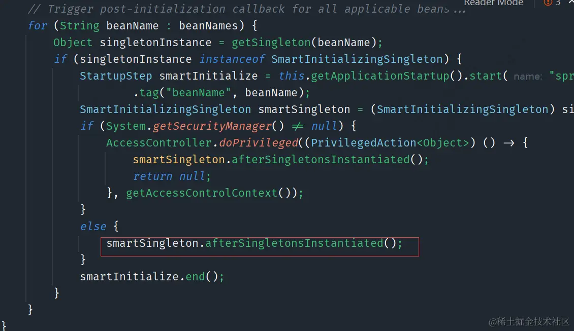 实现,该方法会比afterSingletonsInstantiated更先执行,而此时事件监听容器还没有该事件的观察者,就会导致事件发布了,但是没有相应观察者进行监听