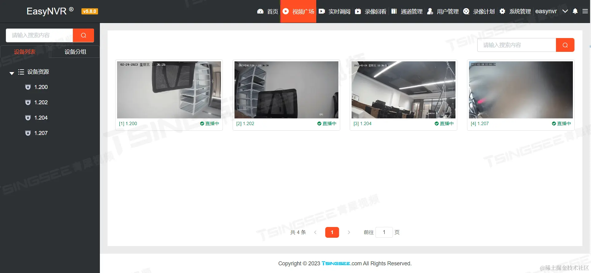 EasyNVR平台优秀的视频能力在于通过RTSP/ONVIF协议,将前端接入设备的音视频资源进行采集,并转码成适合全平台、全终端分发的视频流格式,包括RTMP、RTSP、FLV、HLS、WebRTC等格式。平台可提供视频直播监控、录像、检索与回看、云存储、国标级联等视频能力,广泛应用在智慧水利、智慧工地、智慧校园、智慧社区等场景中。