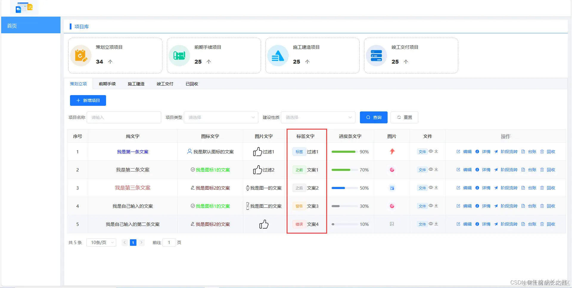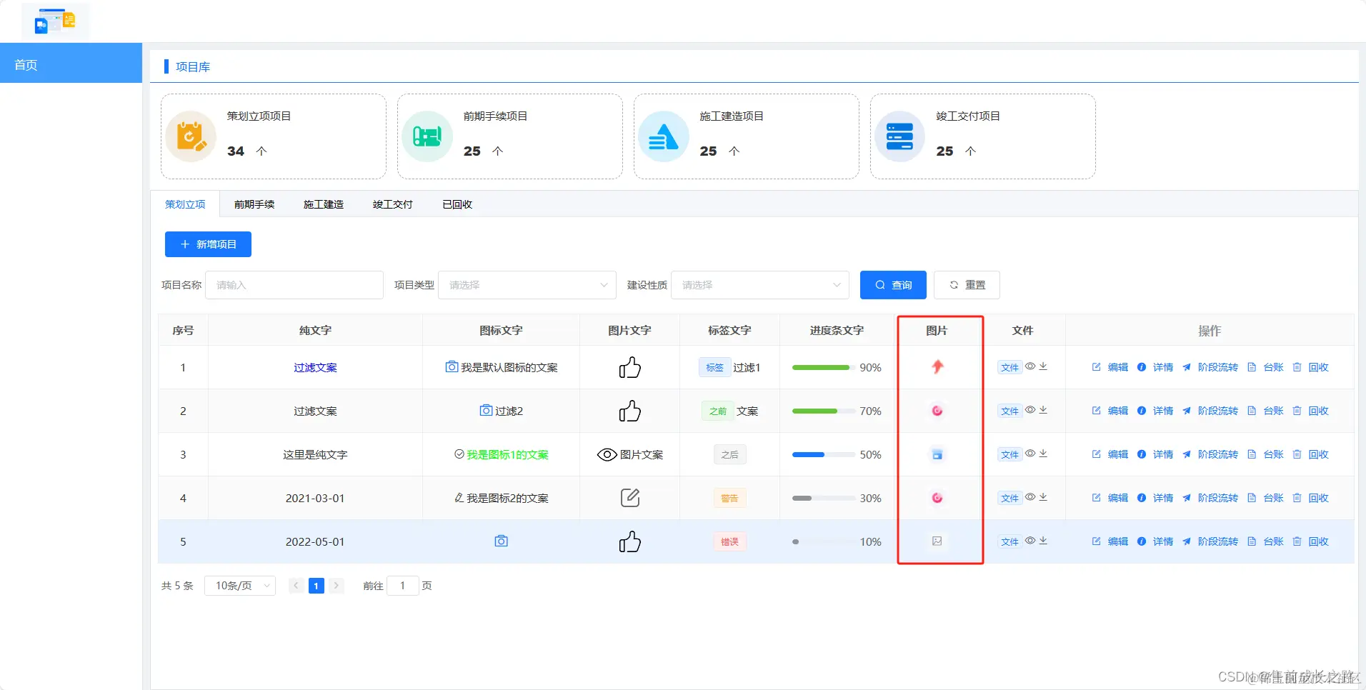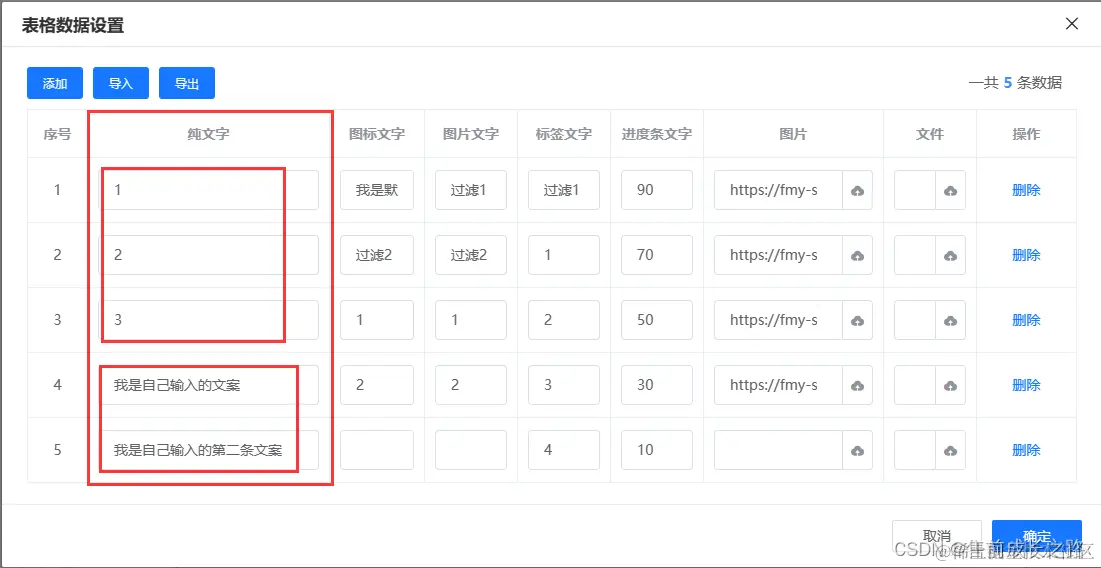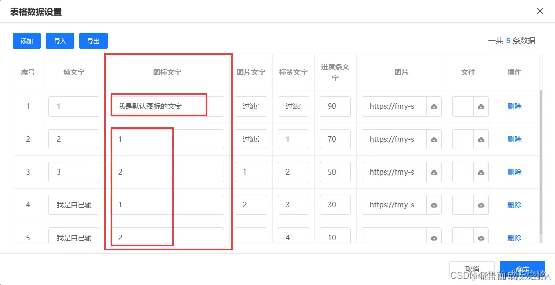 在使用中我发现表格列设置主要包括了纯文字、图标文字、图片文字、标签文字、进度条文字、图片以及文件七个不同的类型。