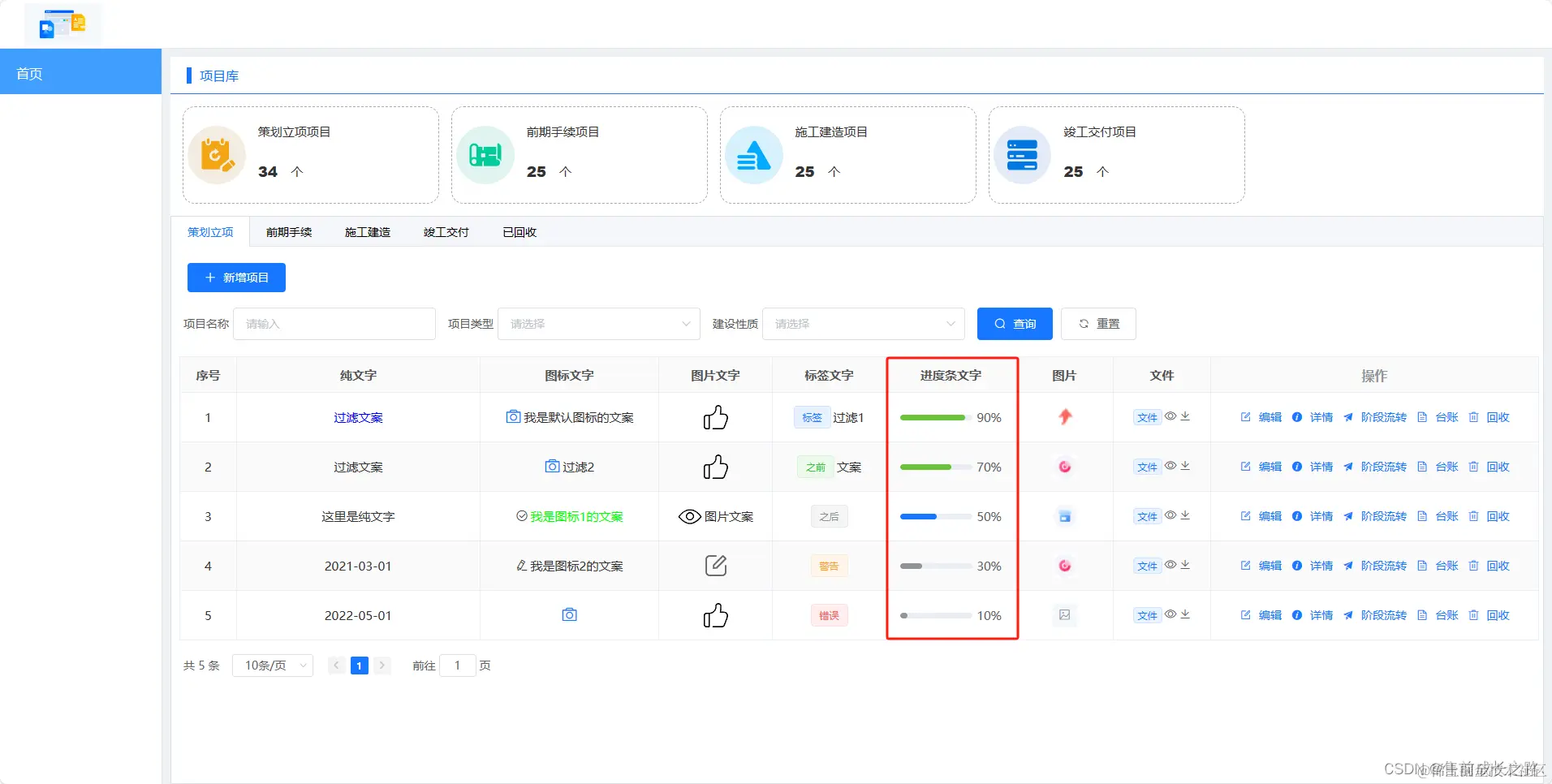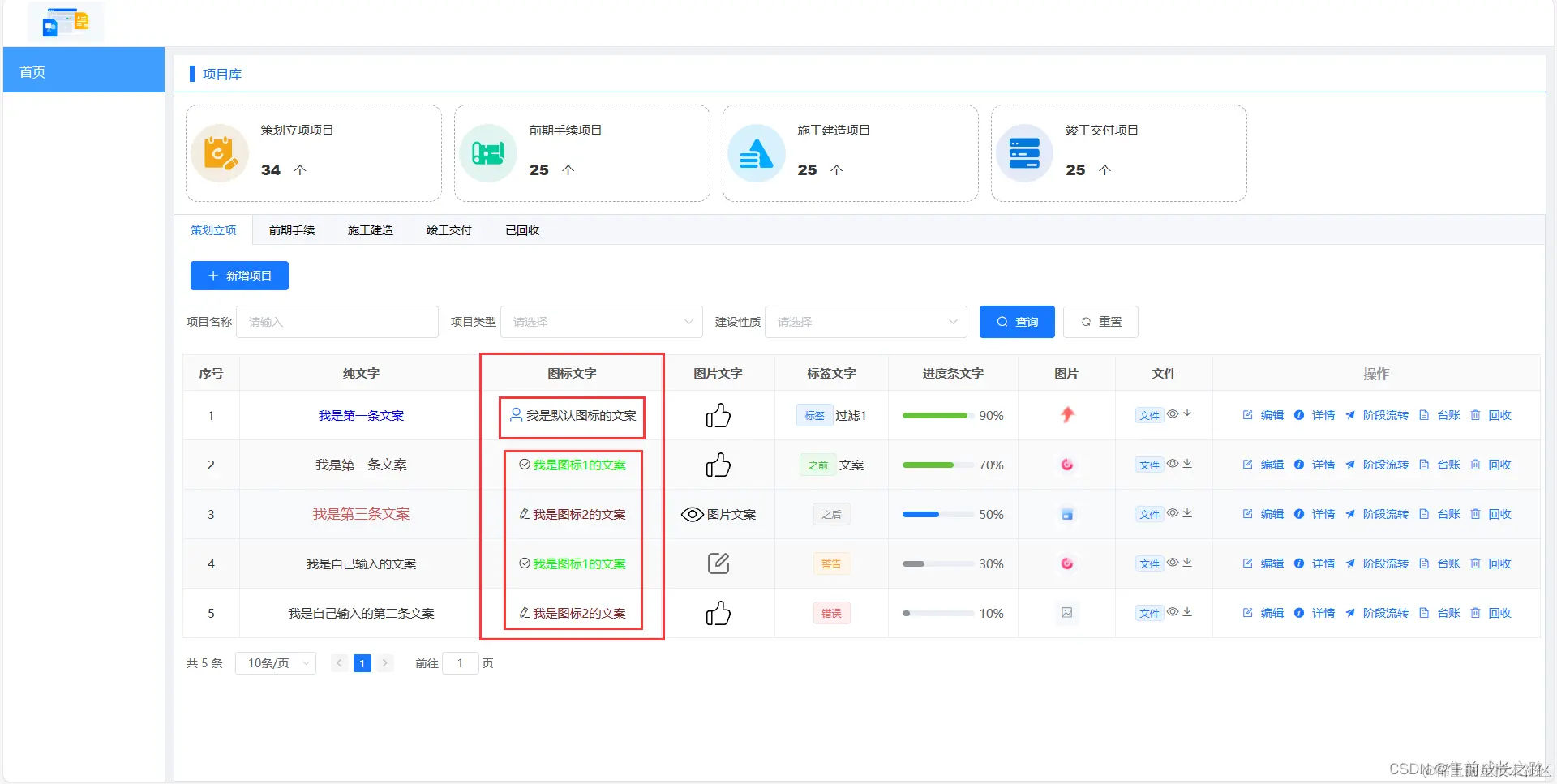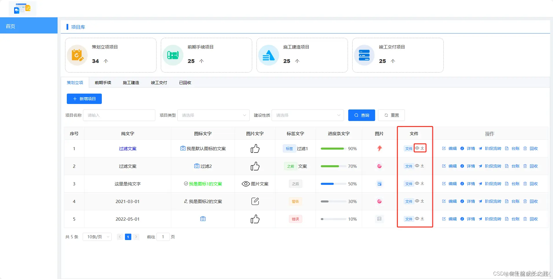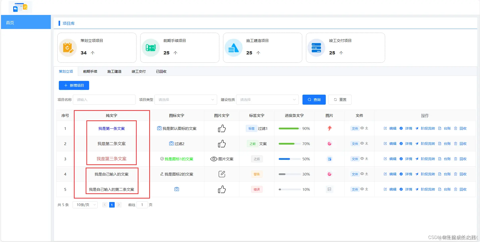 在使用中我发现表格列设置主要包括了纯文字、图标文字、图片文字、标签文字、进度条文字、图片以及文件七个不同的类型。