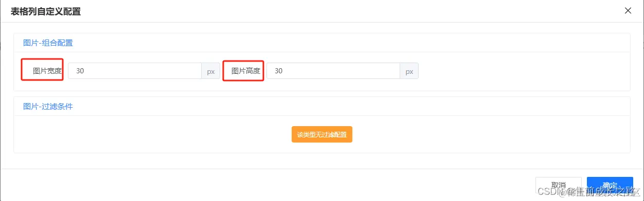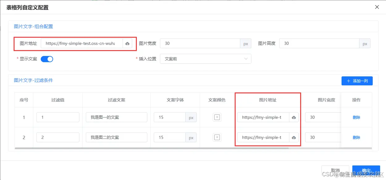 这个列类型是可以允许往表格里面传输图片。我们可以在表格列设置中设置图片的大小。设置完成后,可以在“表格数据设置”中上传图片。