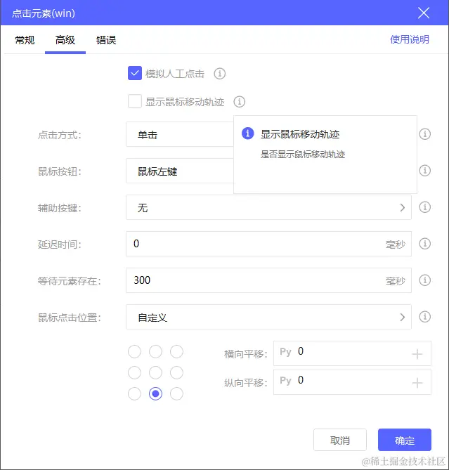 比如翻页以后点击头像,此时"点击元素“可能会点到昵称(如下图)。需要对点击元素,进行高级设置,将点击头像置为下面