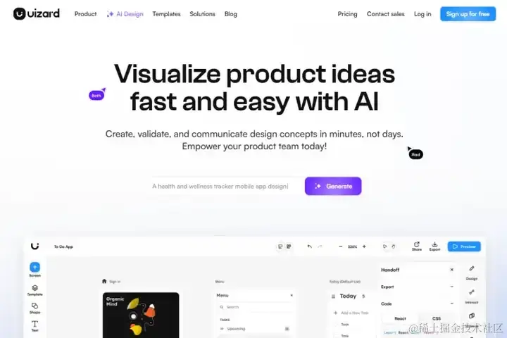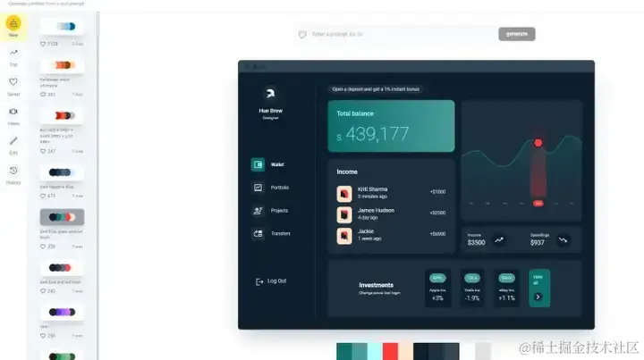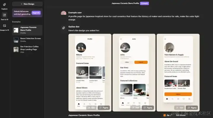 只需要输入一段提示词,它就可以给你一些超棒的设计,真的令人惊叹。AI可以提供如此清晰的用户界面,以及良好的间距、字体大小、图像的使用等。如果你想获得一些伟大的灵感并希望看到一些新鲜的设计,那么你绝对可以尝试这个工具。