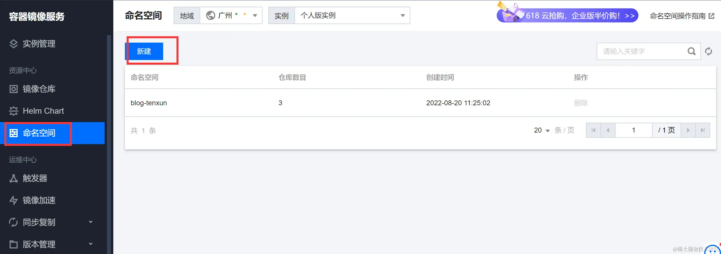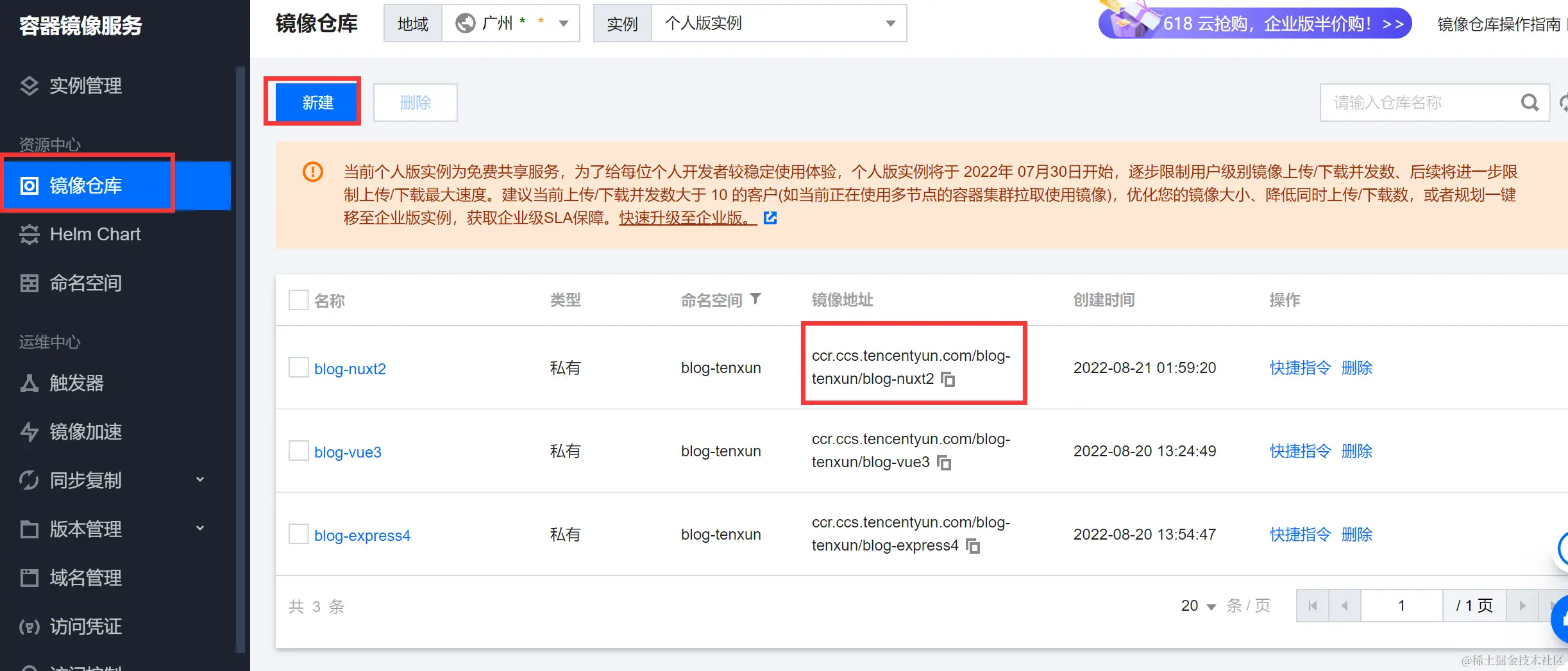 1、腾讯云开启镜像仓库