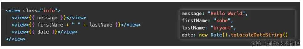 小程序和Vue一样, 提供了插值语法: Mustache语法(双大括号)